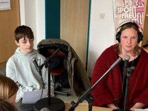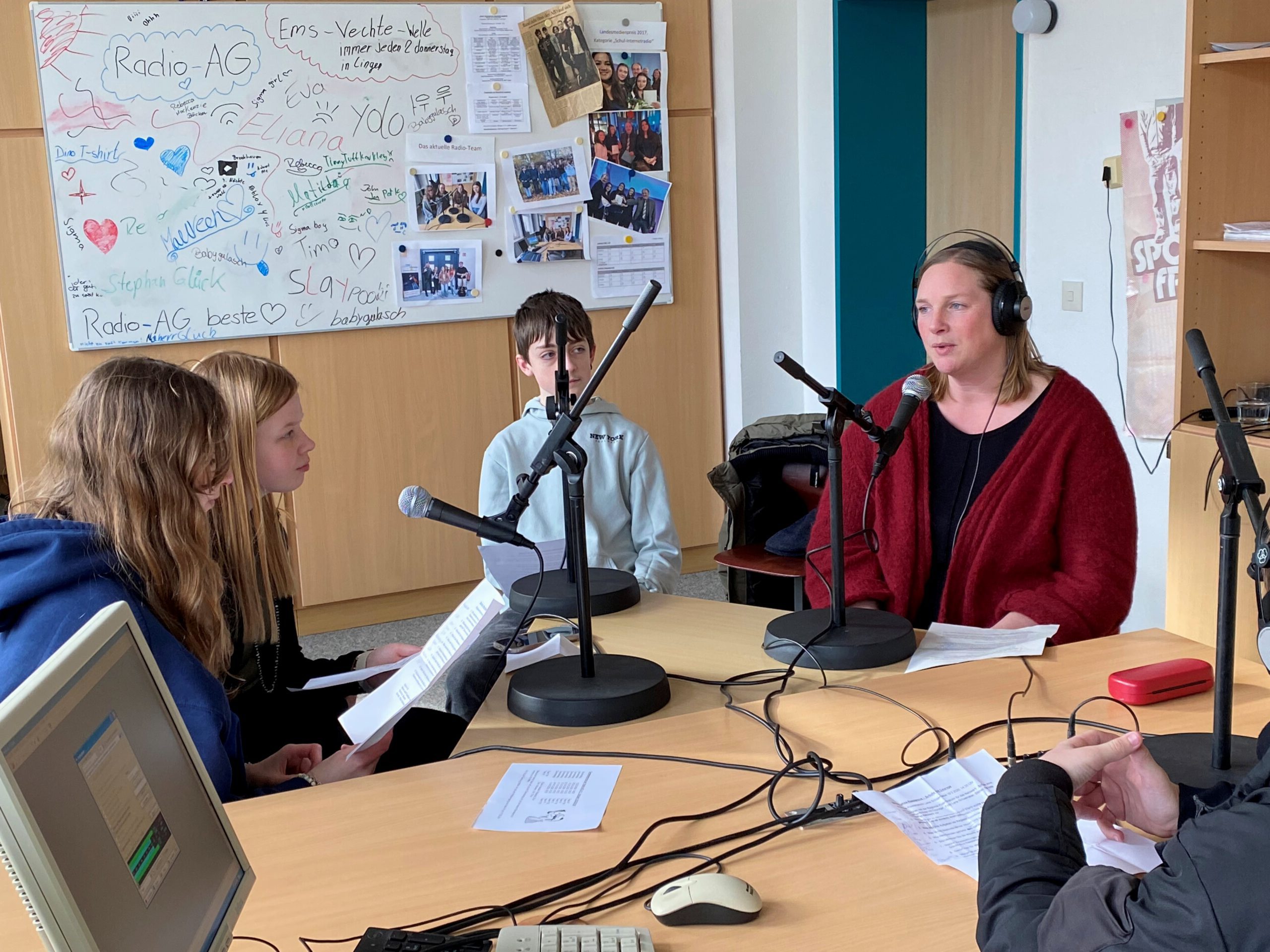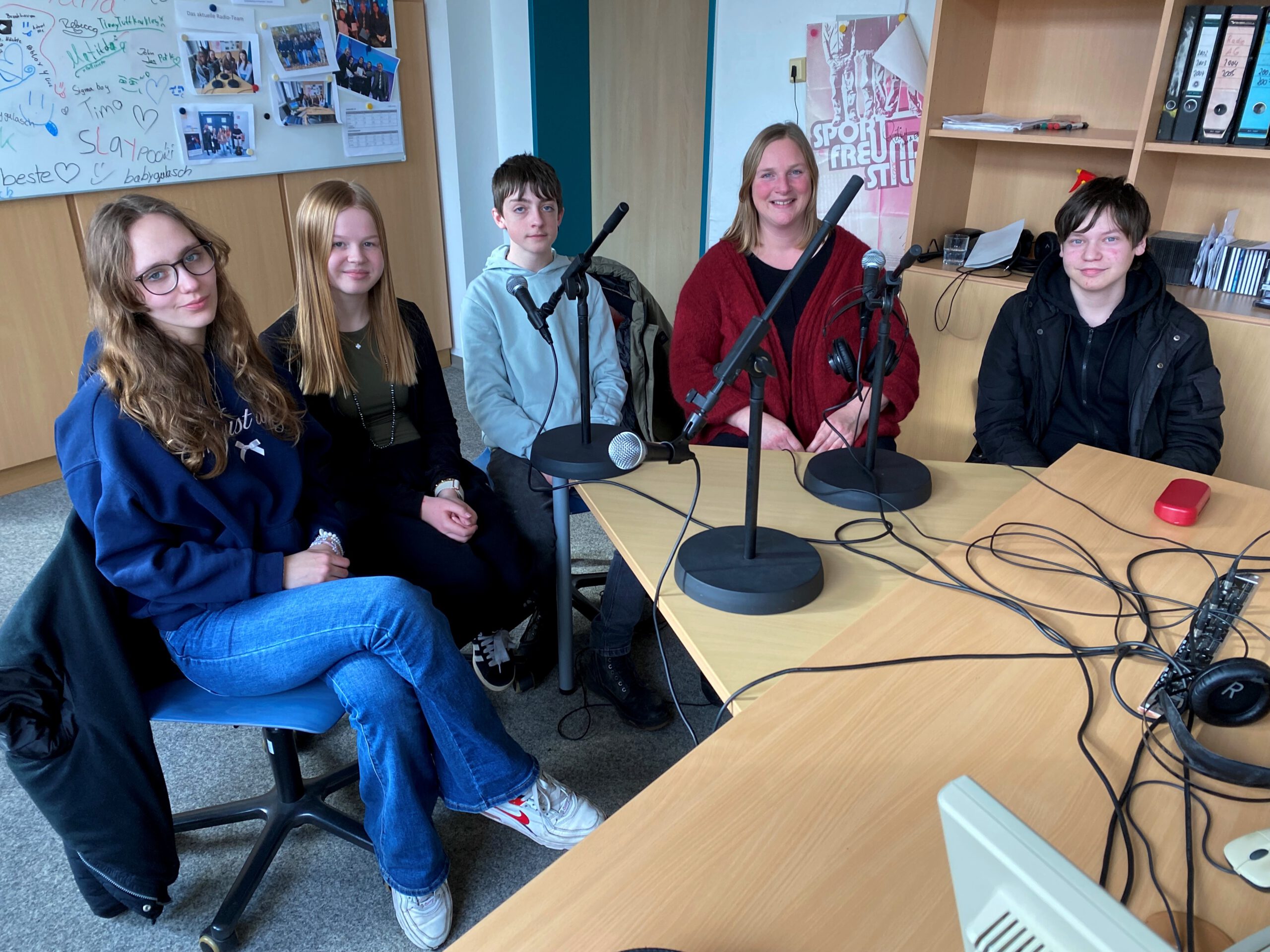 - Bettina Göschl und Klaus-Peter Wolf mit unserem Radio-AG Verantwortlichen Stephan Glück